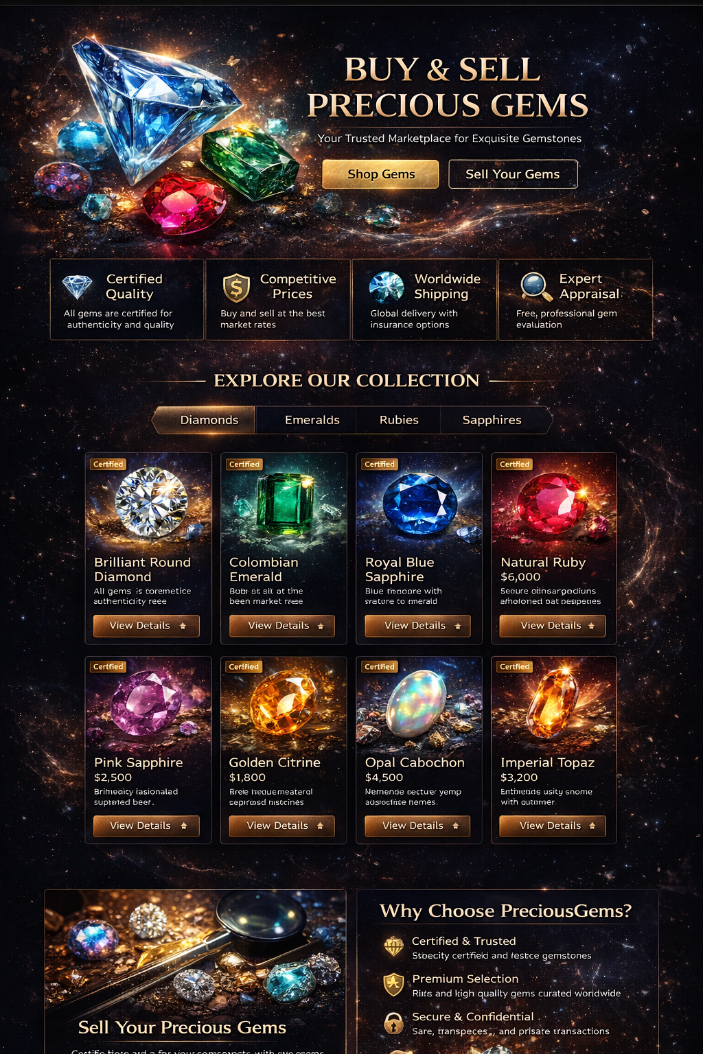 Every great design starts with a clear vision. From the beginning, Precious Gems was imagined as a premium marketplace where buyers and sellers could connect with confidence. The challenge was clear: how do you make something as tactile and emotional as gemstones feel just as powerful online?